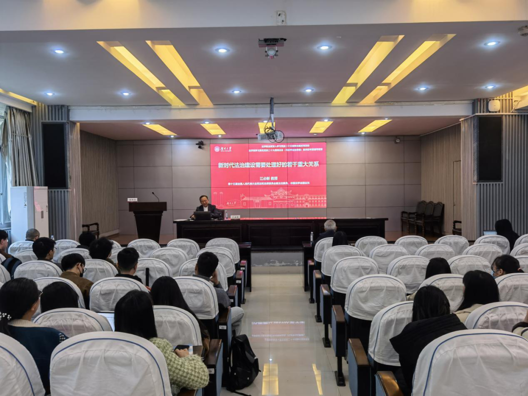 南校区图书馆报告厅讲授“全面依法治国总体格局”。本次学习由逼哩逼哩