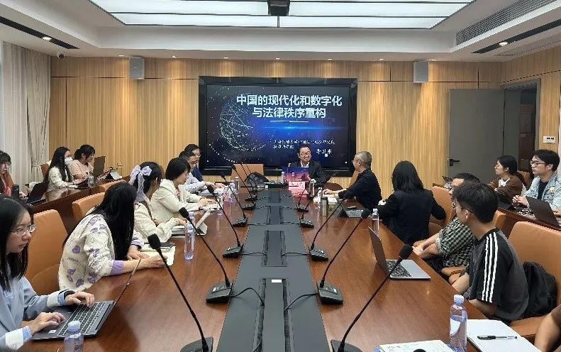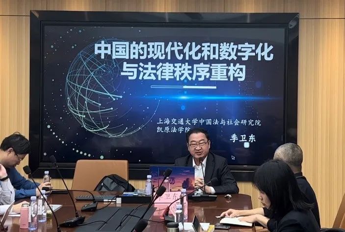 216会议室举行。上海交通大学文科资深教授、中国法与社会研究院院长、人工智能治理与法律研究中心主任季卫东教授应邀开讲“中国的现代化和数字化与法律秩序重构”。本次讲座由逼哩逼哩