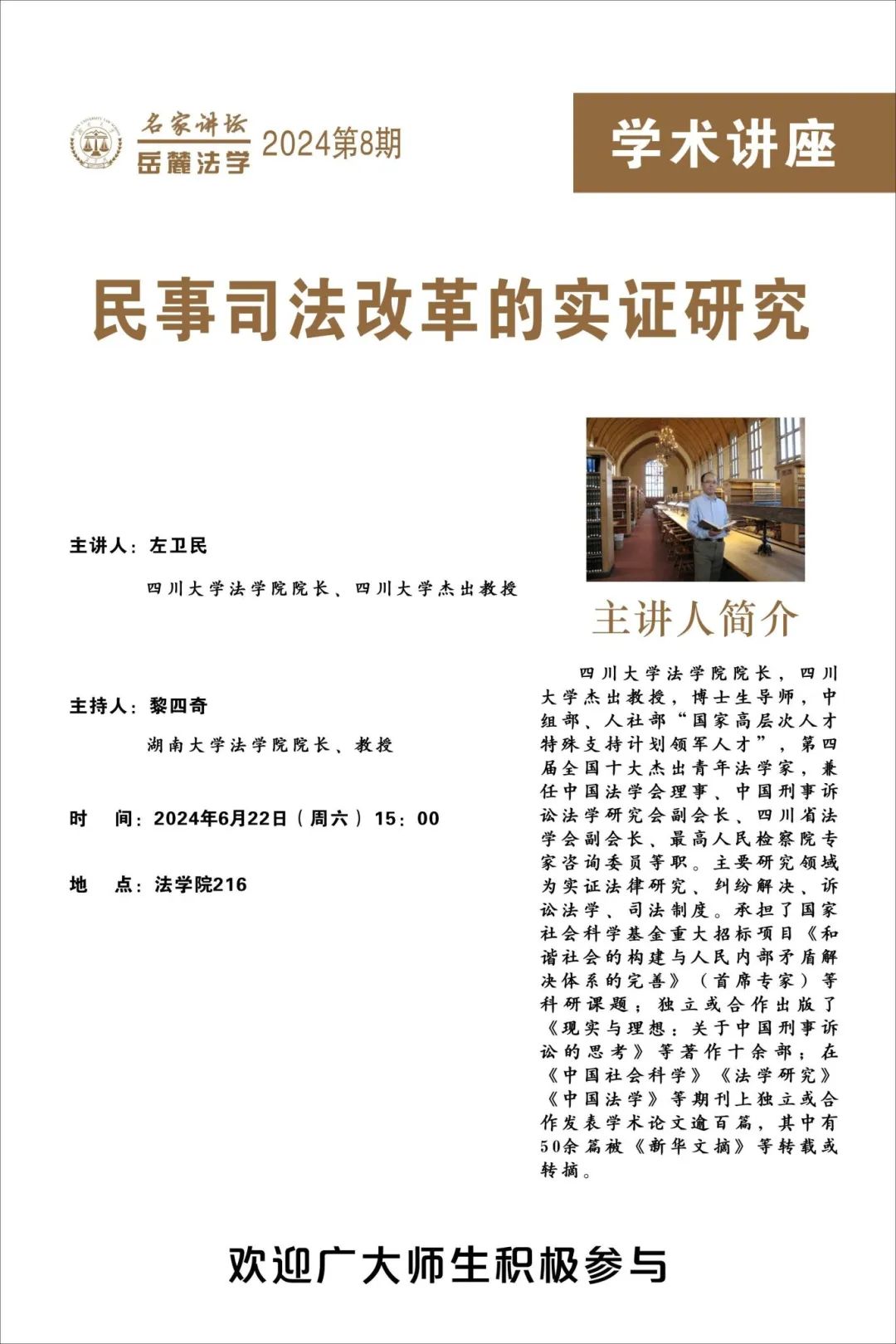 2024年6月22日下午,岳麓法学名家讲坛第8期于逼哩逼哩