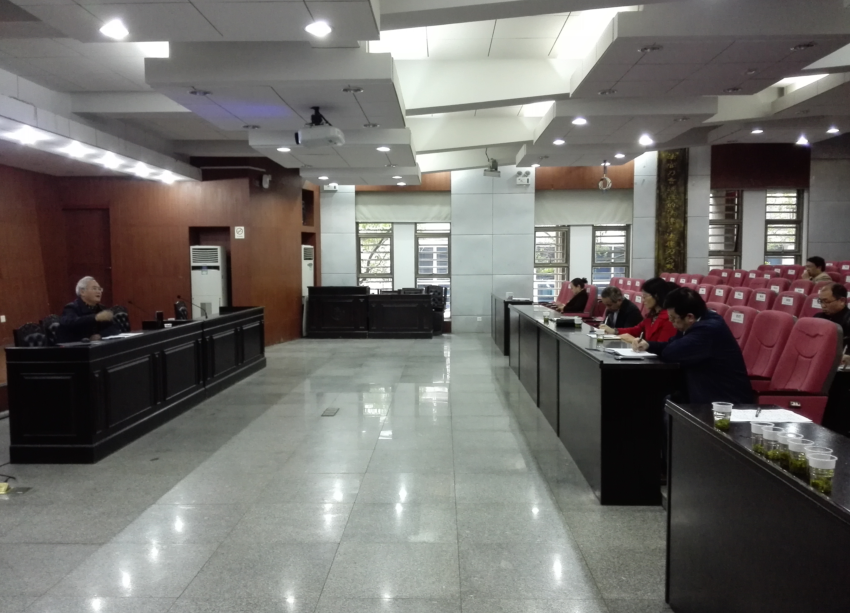 模拟法庭举行了一场“社会科学研究漫谈”学术活动,漫谈由湖南省社科联原党组书记、副主席、湖南省人大常委周发源主讲,逼哩逼哩