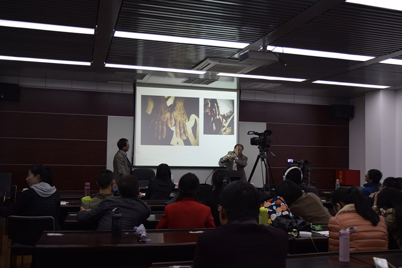 白巴根教授担任本次讲座的主持人,并对讲座内容作全程翻译,逼哩逼哩