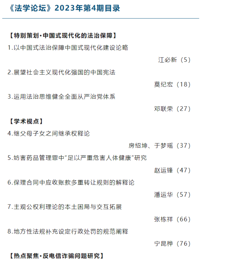江必新教授在CLSCI期刊《法学论坛》2023年第4期发表论文《以中国式法治保障中国式现代化建设论略》。