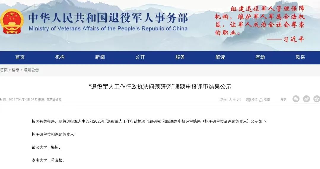2025年上半年,退役军人事务部公布了2025年部级课题“退役军人工作行政执法问题研究”申报评审结果,逼哩逼哩