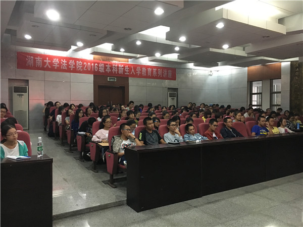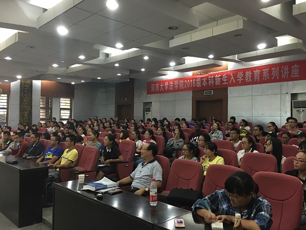 2016级本科新生入学教育之法学、政治学专业介绍会在模拟法庭举行。法学系主任蔡唱教授、政治学系主任刘少华教授、政治学系助理教授余凯、韩琳老师等作为主讲嘉宾出席介绍会。