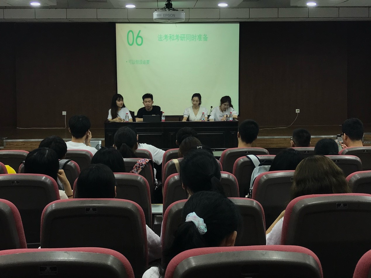 19级年级会主办的“17级考研经验交流会”在模拟法庭顺利开展。逼哩逼哩