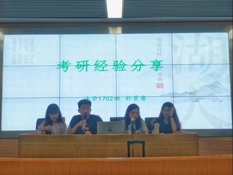 接着陈佳学姐对法硕考研做了补充。她主要从她复习考研的时间线出发,为在座同学们提供了各科学习备考建议,分享了复试心得等。白帆则对于公共课程的学习提出了自己的观点。马雨鑫着重对学硕资料的获取等方面分享了自己的经验和看法。如通过查找目标院校的指定教科书、提前了解目标院校考试的科目,通过关注公众号来了解目标院校对于每门科目的偏重和喜好,以便能更有针对性地展开复习。