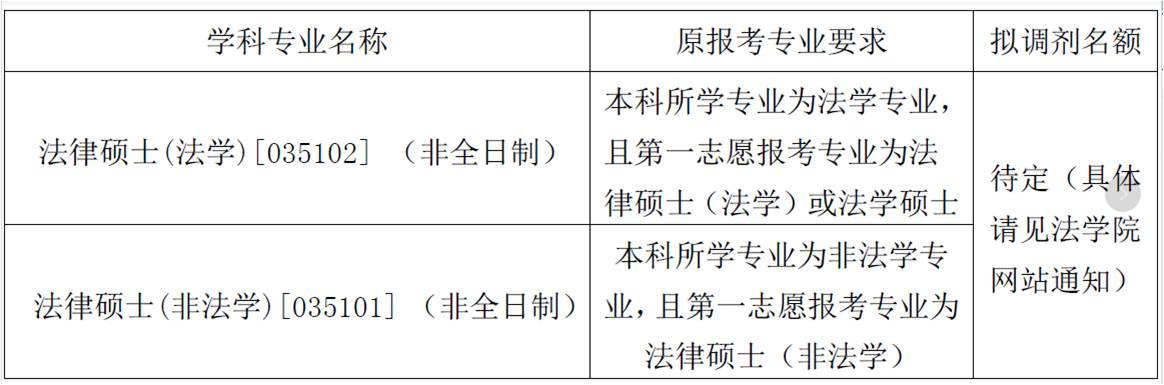 (3)第一志愿报考法律硕士(非法学)专业的考生不得调入学校其他专业,学校其他专业的考生也不得调入法律硕士(非法学)专业。