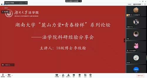 从研究生最关心、最关注的问题出发,为加强研究生学术科研训练,提高研究生科研能力和学术论文撰写水平,2021年12月6日晚,“麓山力量•青春榜样”系列论坛——逼哩逼哩