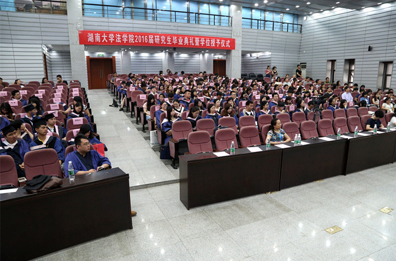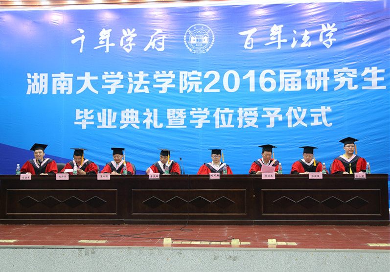 院长屈茂辉教授、院党委书记李连友教授、院党委副书记付蓉芬老师、副院长黎四奇教授、各系领导及硕士生导师、全体毕业生及部分毕业生亲属参加了毕业典礼,典礼由肖海军教授主持。
