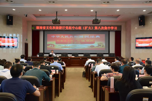 2020年8月20日,湖南省文化和旅游厅组织党组理论学习中心组(扩大)第八次集中学习。本次学习以“学好民法典,做学法遵法的模范”为主题,逼哩逼哩