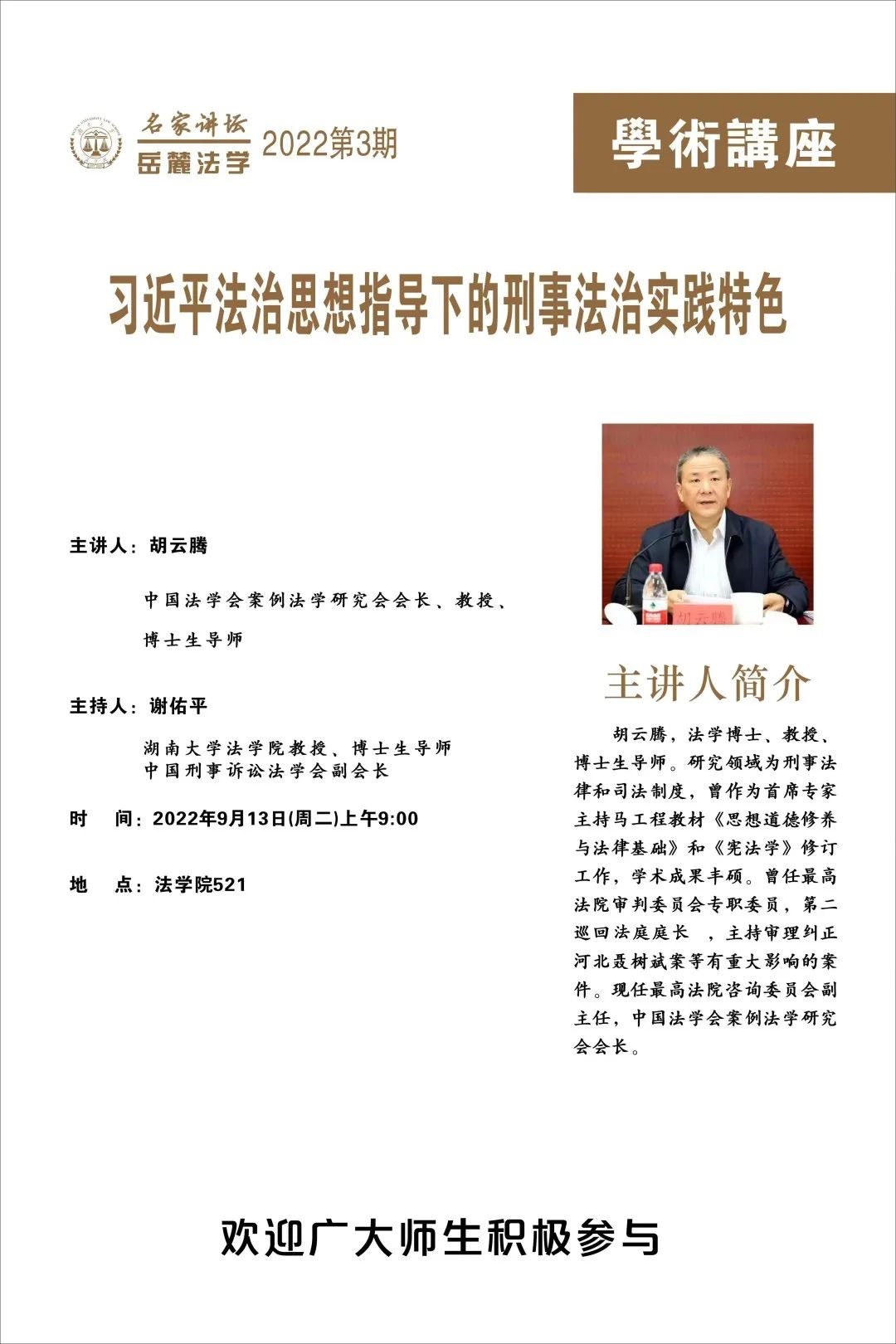 2022年第3期“岳麓法学名家讲坛”,在逼哩逼哩