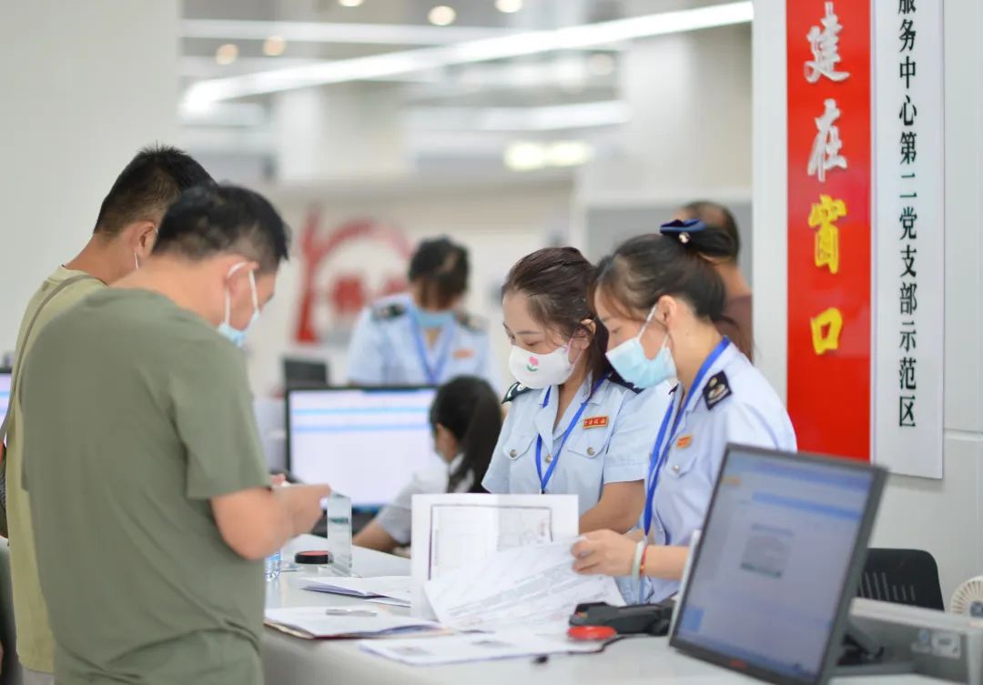 (9月7日,永州市政务中心,市民在税务窗口办理业务。大数据赋能让企业和群众办事不跑腿、少跑腿成为常态。周密 摄)