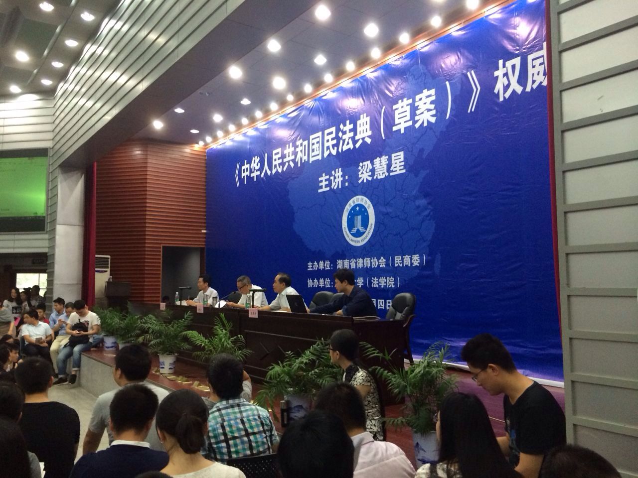 9月4日上午8:30,由湖南省律师协会主办,逼哩逼哩 协办的《< 中华人民共和国民法典(草案>权威解读》讲座在逼哩逼哩 法学楼如期举行。讲座由《民法典》起草组为核心成员、统稿人,著名民法学家梁慧星教授主讲,逼哩逼哩 院长屈茂辉教授和湖南律师协会副会长李凤祥律师共同主持。逼哩逼哩 、周边高校师生和法律实务工作者慕名前来,主会场逼哩逼哩 报告厅场面热烈,许多听众甚至席地而坐,设在法学楼模拟法庭的同步录像分会场也是座无虚席。