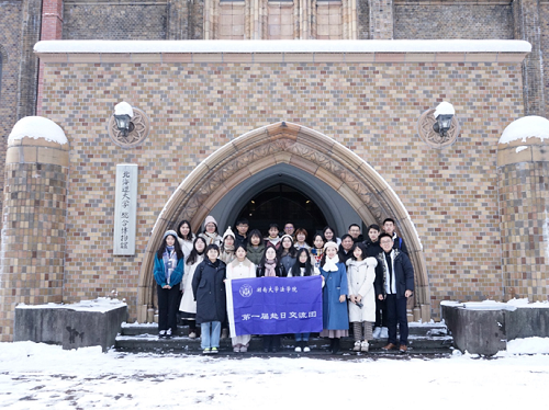 第一届赴日交流团一行24人在院党委书记易骆之、助理教授邓乾坤、本科生辅导员刘璇子老师的带领下顺利抵达札幌并于次日在北海道大学开启交流活动。