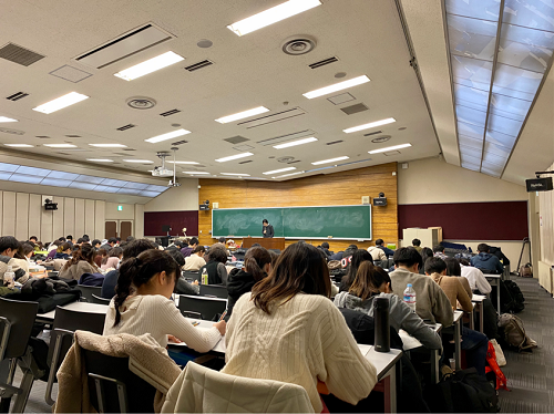 下午,同学们前往北海道大学法学部旁听法学课程。一部分同学旁听了《民法中债务的转移和抵消》课程,另一部分同学旁听了《知识产权法中专利》的课程。与国内法学的教学模式相似,北海道大学的教学也是以讲授为主。王家新同学说:“这两节课的老师将法条和大量的案例相结合,ppt页数很少,主要靠老师的讲述分析。学生们的抬头率特别高,极少有看手机的,应该向他们学习。”