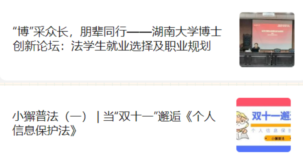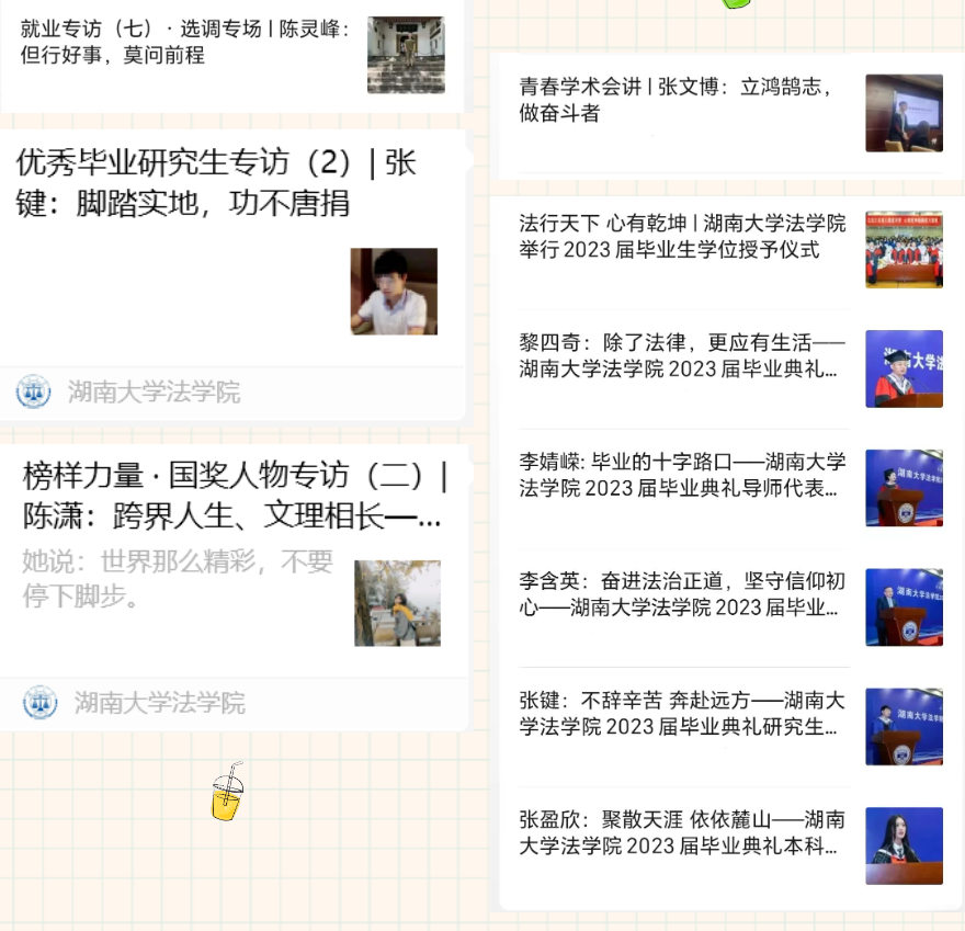 ️3.采访优秀律师校友与毕业生,为大家介绍不同领域的工作内容以及职业生涯遇到的困难和挑战,帮助同学们了解律师、公务员等职业发展前景,为之后就业做好充足的准备。