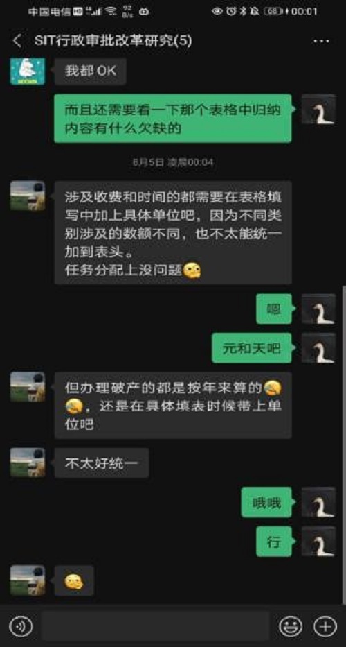 通过本次线上调研,团队成员收获很大,不仅在宏观上了解了湖南省省级行政许可的概况,而且也提高了自身数据搜集整理能力。作为当代大学生,要积极关注热点问题,不断提高信息搜集整理、材料分析等能力,为国家发展作出自己的贡献。