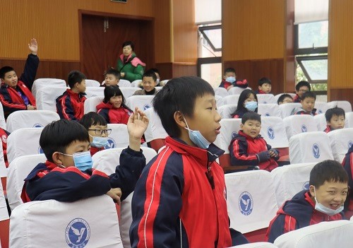 近年来,随着经济社会与网络技术的快速发展,青少年参与网络游戏充值的现象越来越普遍,同时层出不穷的网络骗局也严重侵害青少年的财产与人身安全。活动伊始,主持人曹炉丹同金鹰小学的小朋友们积极互动,同学们踊跃举手发言,向主持人介绍自己曾遭遇的网络骗局,主持人就此向同学们展示有关小学生网络游戏充值现状的新闻,引出本次普法活动的主题。