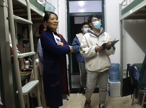 本科生辅导员郑琼英老师和美丽努尔老师、研究生辅导员刘岳峰老师以及院学生会、研究生会主席团成员、各年级年级长、各年级团总支书记走访学生宿舍,进行了严肃公正的宿舍卫生安全评比。