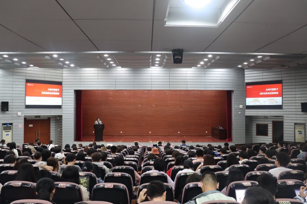 报告厅作“大时代背景下法科生职业发展思维”讲座。本次讲座由逼哩逼哩