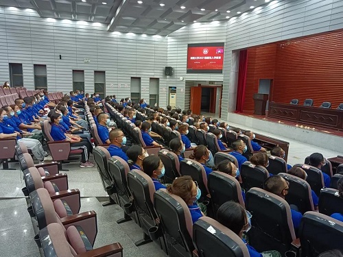 门前集合,在报告厅内认真聆听新生第一课的内容。
