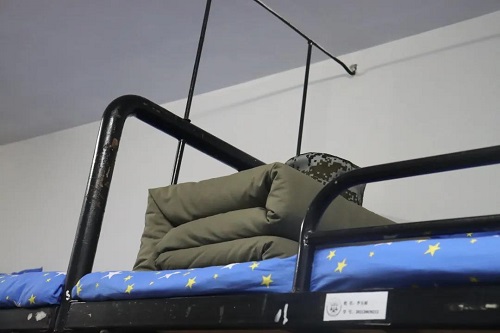 牙杯、板鞋、水盆……所有个人物件都按照要求摆放得整整齐齐,一眼望去仿佛是Ctrl C+Ctrl V。