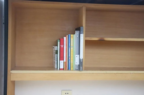 书籍由大到小排列得十分规整,既像是行军路上有序的队列,又像是一排向上的阶梯。