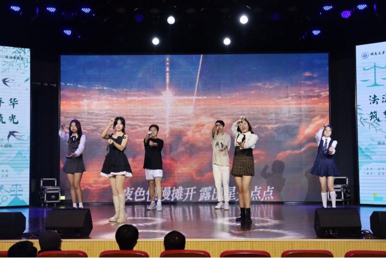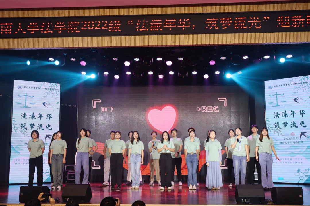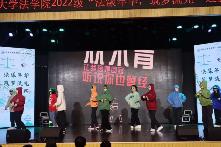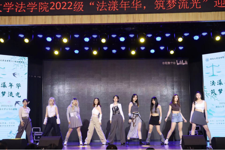 于2022年4月22日在天马小剧场顺利举办2022级“法漾年华,逐梦流光”迎新晚会。逼哩逼哩