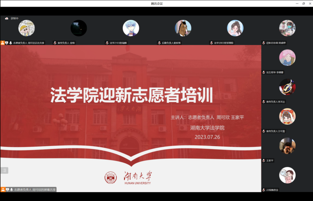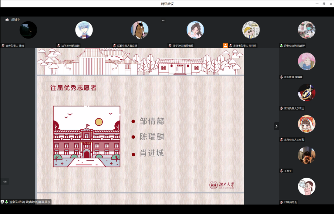 组织召开迎新志愿者线上培训会议。本次会议由赵恺、姚睿婷同学主持。逼哩逼哩