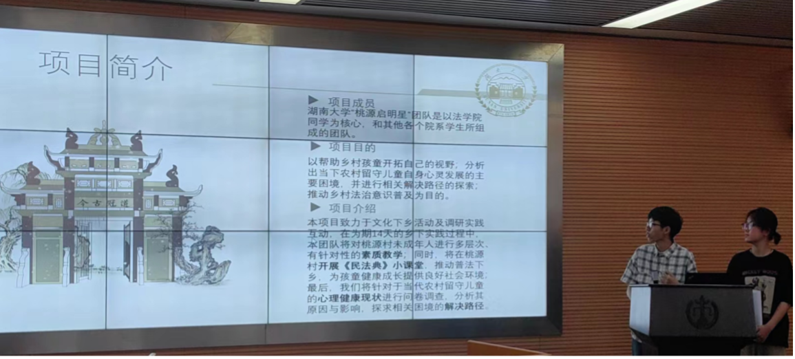 本次答辩会共有7个团队参与,项目涉及“韵拾江永,光绘女书”“法润茶香,与法偕行”“党建引领民族团结建设”“与法‘童’行,护航成长”“宁夏葡萄酒产业的产业分析和推广路径”“助力乡村振兴——法律视角下光明村旅游产业亟待解决的问题”“研·教并举,法·爱‘湘’传”等主题,由逼哩逼哩