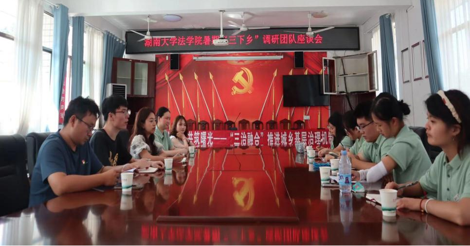 下午,团队成员走进安化县田庄乡人民政府党员活动中心,以“党建引领”和“三治融合”为主题与政府有关负责同志进行座谈,聚焦基层工作人员的工作内容,深入了解当地基层治理的机制创新。安化县采取了完善基层自治机制、落实发展村规民约、深化村务公开“亮栏”行动等措施,着力提升基层执法能力,切实完善执法工作,夯实自治基础;加强党组织领导,强化对法治建设工作的监督,组织培训法治工作队伍,有力推进法治建设;深化矛盾调解机制,以德治为引领,营造和谐有序社会氛围。