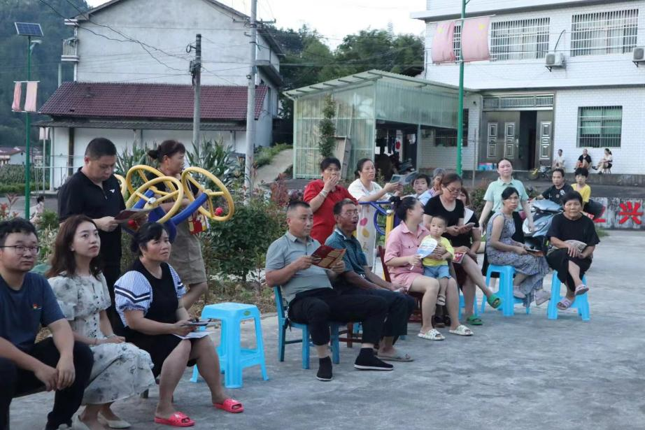 (团队成员在“屋场会”上普法)