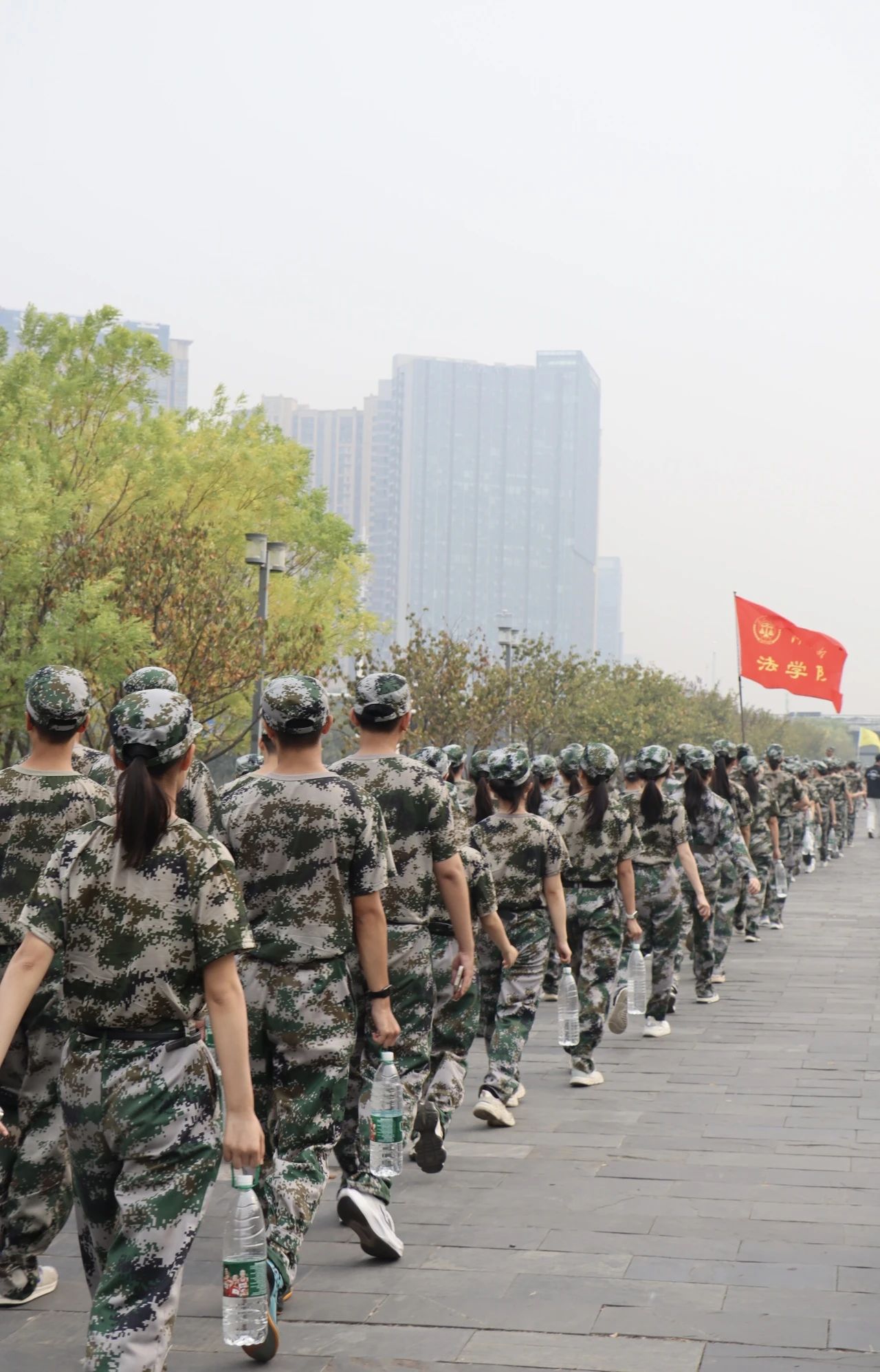逼哩逼哩 2024级本科生身着统一的迷彩服,