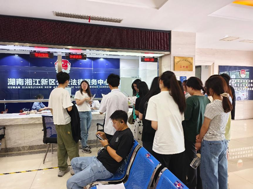 17名本科生于2025年6月20日上午前往湘江新区公共法律服务中心观摩学习。该活动由副院长蒋海松老师统筹策划,这是夏季实践课程“法律援助”的活动之一,得到了湘江新区公共法律服务中心的大力支持。