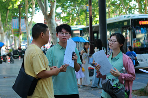 11日下午至12日,实践团队前往社区小巷进行问卷调查和访谈。在汴河街,团队成员既探寻本地居民对洞庭湖司法情况的认知程度,也收集游客对洞庭发展的肺腑建议,让民生建议如涓涓细流汇入调研问卷。在社区访谈中。社区居民们对调研工作鼎力支持,接过问卷时的谨慎认真,恰似对待一份守护洞庭的承诺。成员们以闲聊对话的轻松方式,细细解释问卷填写要点及每个问题背后的深意,让法治理念随话语浸润人心。