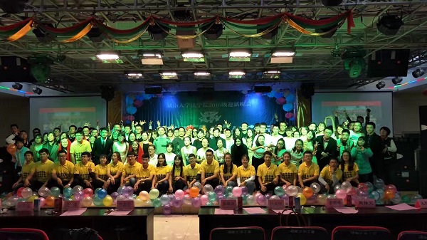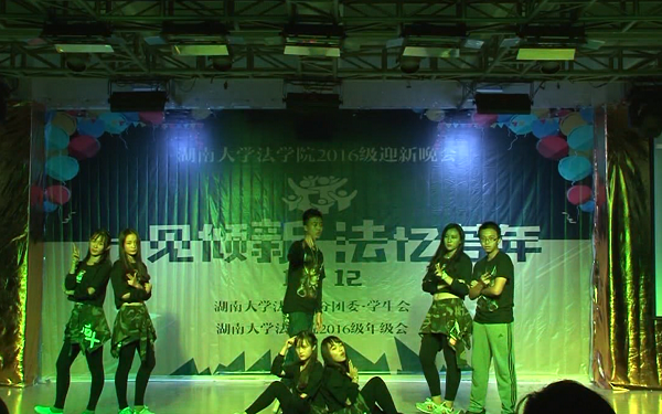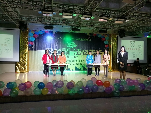党委副书记、副院长付蓉芬老师,党务与学生工作办公室主任杨锦滔老师,法学1605班班主任刘宏斌老师、行管1601班班主任徐莹老师、法学1604班班主任余凯老师、法学系姚诗老师、法学1601班班主任朴成姬老师,法学1603班班主任李婧荣老师,辅导员李释然、王耿翔、杨凯,以及军训教官、迎新团队成员、学院研究生会、学生会主要学生干部、其他年级学生代表、2016级全体新生近四百人观看了晚会。