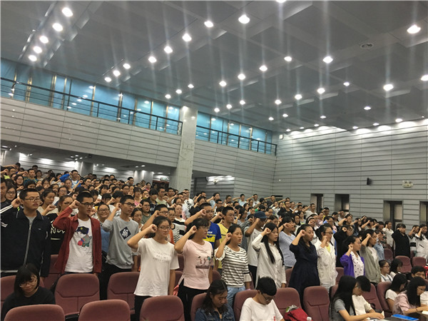 青年志愿者团章程》,并在发言结束后带领2016级本科新生宣誓。“尽己所能,不计报酬,帮助他人,服务社会,践行志愿精神,传播先进文化,为建设团结互助、平等博爱、共同进步的美好社会贡献力量”。每一位同学高举右手喊出的铮铮誓言,都是在宣告着,必将在“奉献、友爱、互助、进步”的志愿者精神的指引下,为之努力奋斗。