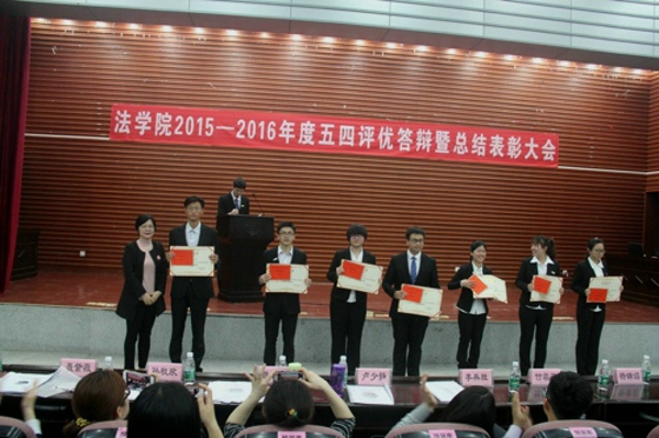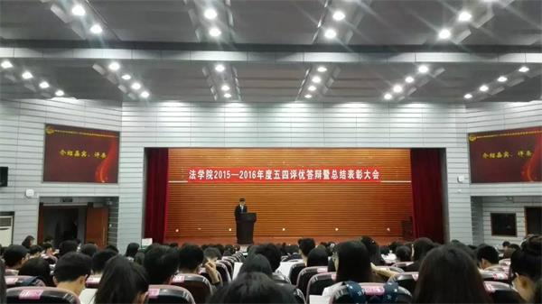 2015—2016年度五四评优答辩暨总结表彰大会在学院报告厅隆重举行,共有11个班级的团支部进行了答辩展示,一批先进集体和个人受到表彰。