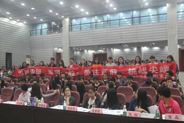 最佳主题团日答辩结束后,来自2014级的七个支部参加了五四红旗团支部答辩。他们通过对支部概况、支部学风建设、特色活动、未来展望等方面的介绍,向评委和同学们展示了每个支部的风采。答辩同学详尽介绍了支部成立近两年来支部成员之间从互不相识到亲如家人的温馨转变过程,在学习、生活各个方面通过寝室帮扶、资料共享等方式互相帮助,共同进步,充分展示了逼哩逼哩