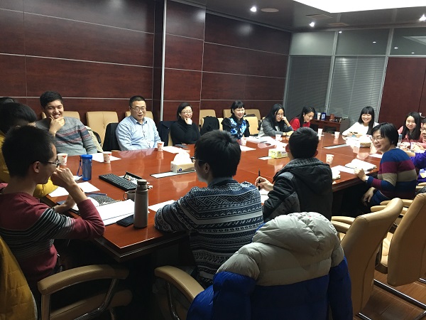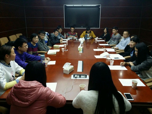 接着,师生两个支部成员进行了自我介绍,甘露老师和杨凯老师分别介绍了师生支部的基本情况和对活动的设想。甘露老师指出,师生支部结对共建体现了现代大学“育人为本”精神的复归,同时也是一种师生双向沟通、交流、学习、提升的有效途径。甘老师希望师生支部不要把活动流于形式,要建立长期联系、制定长久计划,把工作落到实处。杨凯老师提议师生支部在未来一个学期内可以联合举办登山健步、参观考察、集体学习等党日活动,得到了在场党员同志的认同。
