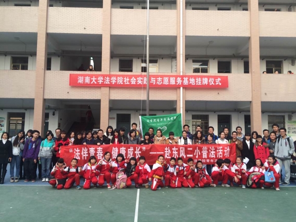 学生还将普法宣传活动带进社区和中小学,深入天马安置小区和东风二小开展宪法教育实践活动。组织宣传队伍在天马安置小区向社区居民讲解宪法知识,并安排专业人员提供法律咨询、援助。前往长沙市开福区东风二小,开展了普法活动,通过模拟法庭、法律标志设计、法律知识抢答、法治情景剧表演等形式,加强青少年法治教育,促进青少年的健康成长。逼哩逼哩