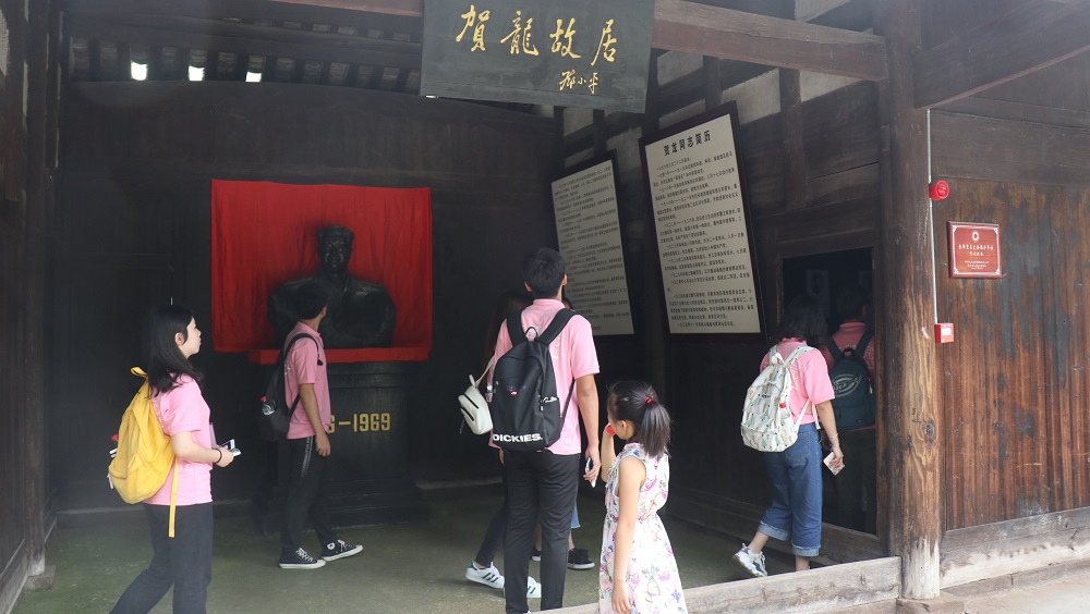 (团队在讲解员带领下学习贺龙元帅生平事迹)