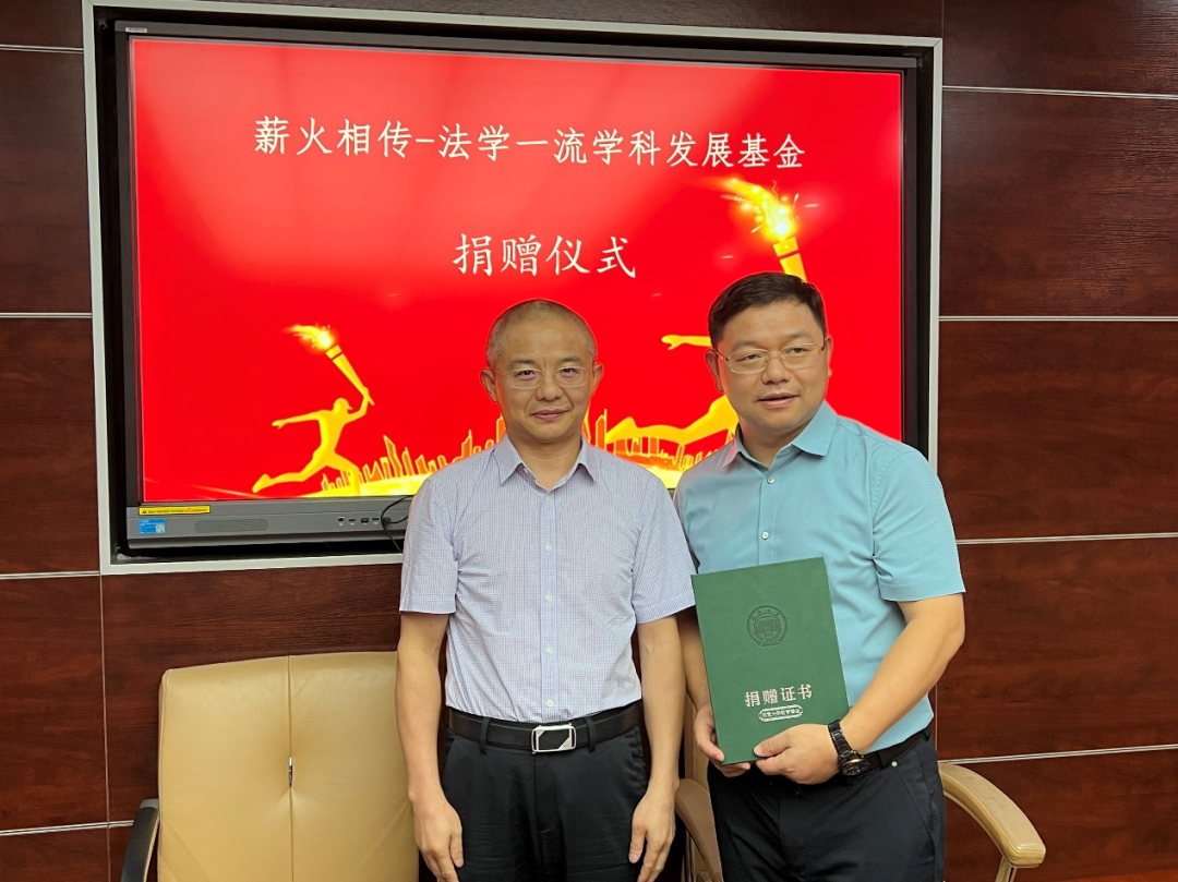 湘江水满,麓山枫红,2022年9月20日下午,法学楼405会议室隆重举行薪火相传-法学一流学科发展基金捐赠仪式。