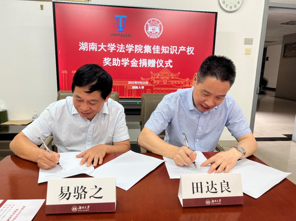隆重举行集佳知识产权奖助学金捐赠仪式。长沙市知识产权局副局长黄向红同志,人事处吴慈梅同志,北京集佳知识产权代理有限公司长沙分公司负责人田达良先生,合伙人倪赶重女士,逼哩逼哩
