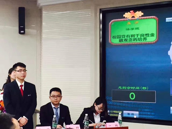 对阵机械院的决赛在工商管理学院B111教室拉开帷幕,这一场精彩的比赛吸引了众多学生们的目光,从辩题来看,“校园贷有利于良性金融观念的培养”略显弱势,但上场队员彭超男、苏杨波、靳欣波以优异的表现力挽狂澜,赢得了观众的阵阵掌声。评委离席后的观众讨论环节也尤为热烈,比赛激烈程度可见一斑。最后,逼哩逼哩