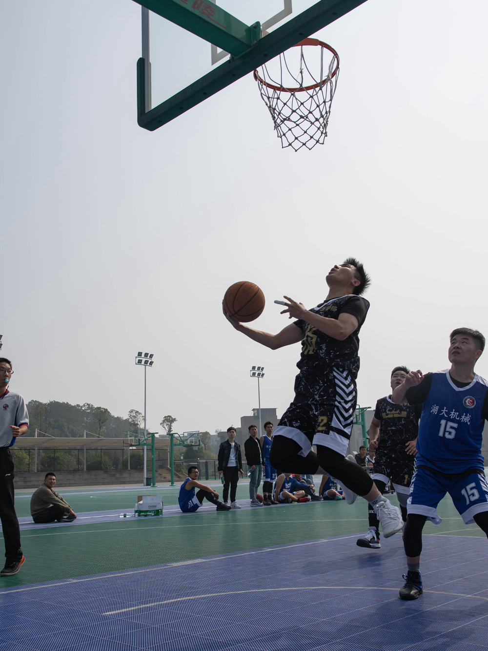 在南校荫马塘球场迎来了最后一场小组赛,本场比赛的对手为机械学院,双方展开了一场精彩的篮球对决。