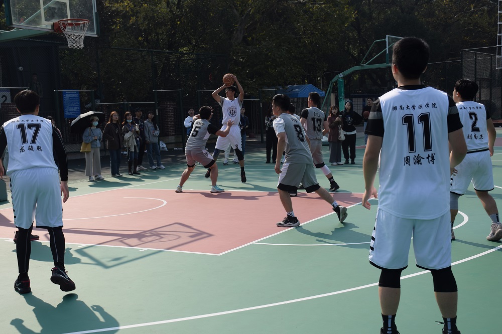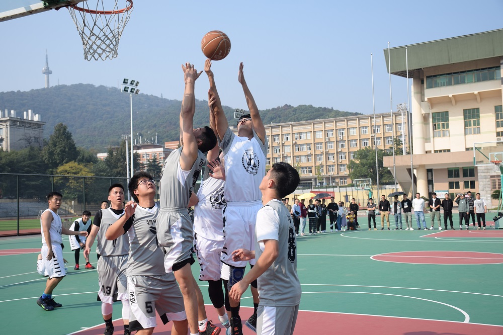 研究生男篮在南校体育馆前的篮球场迎来了第二场比赛,对手是物电学院。这是一场非常关键的比赛,在约一个小时的鏖战中,逼哩逼哩