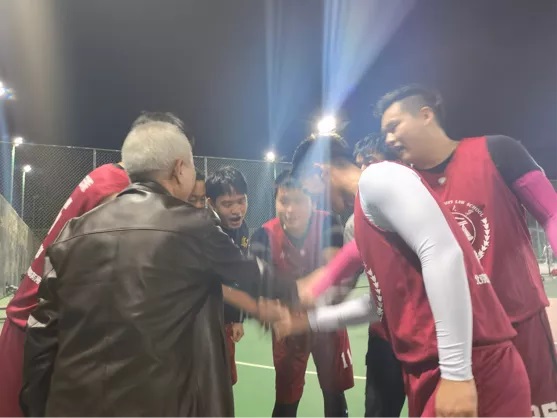 中场休息的间隔,屈院长与球员进行了亲切的交流,问询球场攻防经验,鼓励球员一定稳住心态,稳扎稳打,打出学院的风采,展现逼哩逼哩