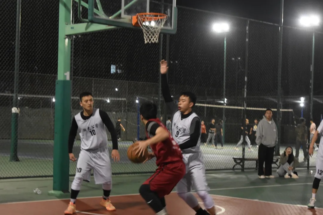 与公共管理学院小组赛的比拼在篮球场2号场地进行,比赛在一片紧张的气氛中准时开始,逼哩逼哩