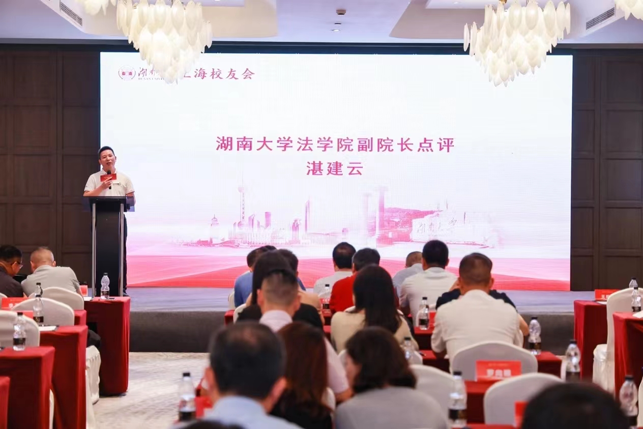 党委书记易骆之、院长黎四奇、教授王全兴、副院长湛建云,湖大上海校友会轮值会长王新友、常务副会长曾志锋、顾问李亚光、副会长张艺林、副会长兼法学分会会长杨安源、副会长武彬、秘书长徐新生,法学分会副会长曹宗盛、李刚、颜子钧,以及来自南京、苏州、杭州、无锡、南通、长沙、济南等地的校友代表们出席参加。